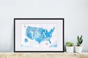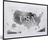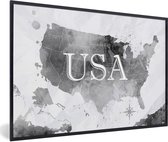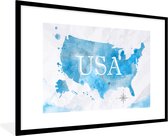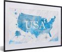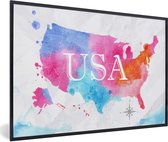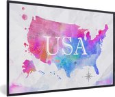 Affiche avec cadre États-Unis - Carte du Wereldkaart - Aquarelle - 60x40 cm