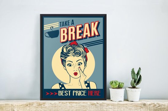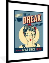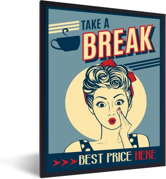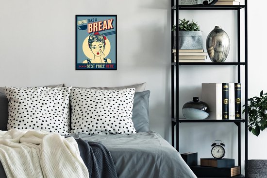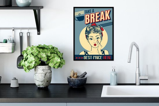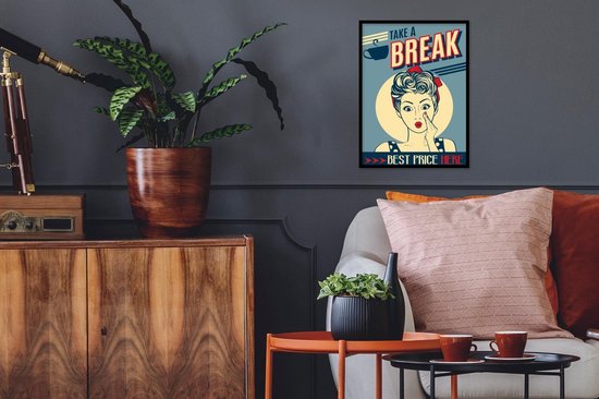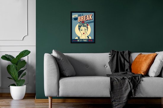 Affiche avec cadre Femme - Vintage - Dessin - Citation - 30x40 cm