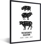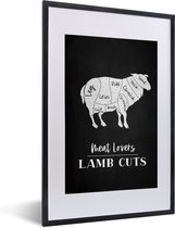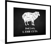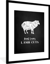 Affiche avec cadre Mouton - Cuisine - Viande - BBQ - 60x80 cm - Cadeau pour femme