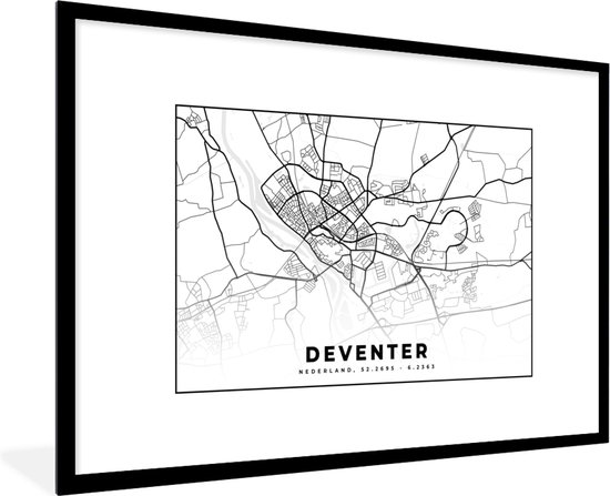 Affiche avec cadre Plan de la ville - Deventer - Pays- Nederland - 90x60 cm