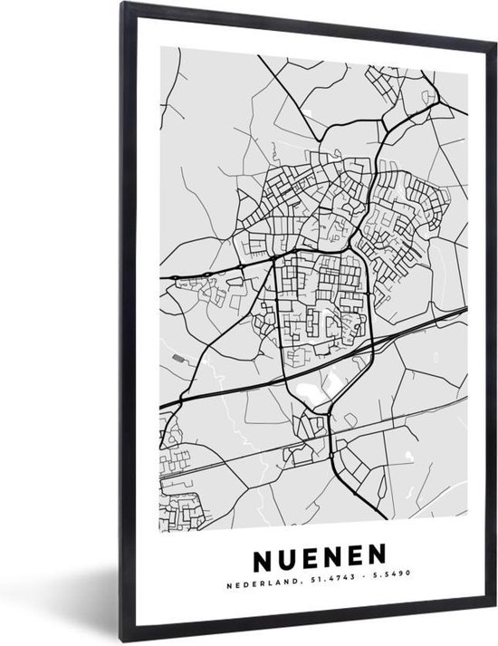 Affiche avec cadre Plan de la ville - Nuenen - Grijs - Wit - 40x60 cm - Carte