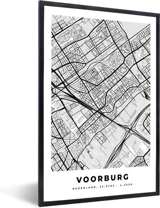 Affiche avec cadre Plan de la ville - Voorburg - Grijs - Wit - 60x90 cm