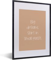 Affiche avec cadre Proverbes - Citations - Les grands rêves commencent dans les petits endroits - Dream - Rêves - 60x80 cm