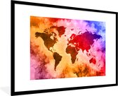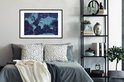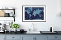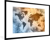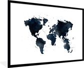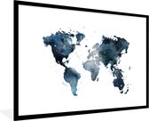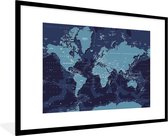 Affiche avec cadre Wereldkaart - Abstrait - Blauw - 90x60 cm