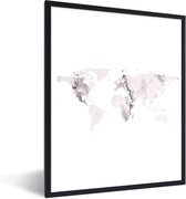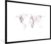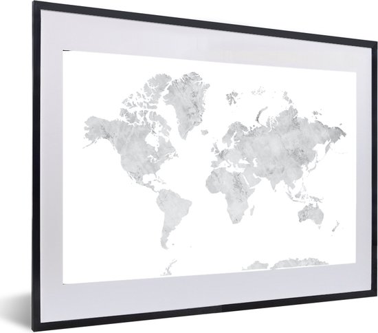 Affiche avec cadre Wereldkaart - Grijs - Marbre - 60x40 cm