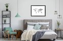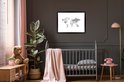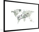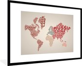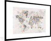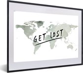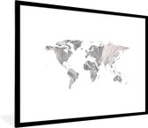 Affiche avec cadre Wereldkaart - Lettres - Grijs - 80x60 cm