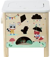 - Le cadre photo noir est en plastique et contient une structure en bois clair