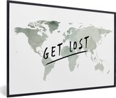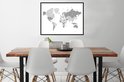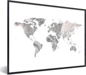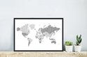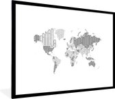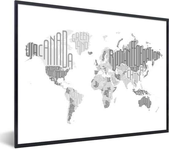 Affiche avec cadre Wereldkaart - Lettres - Grijs - 80x60 cm