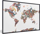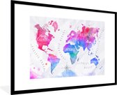Affiche avec cadre Wereldkaart - Terre - Couleurs - 120x80 cm