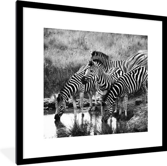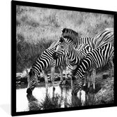 Affiche avec cadre Zèbres buvant - 40x40 cm