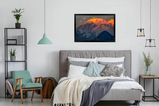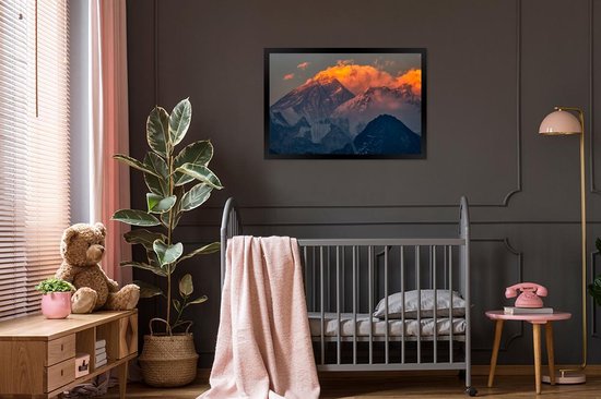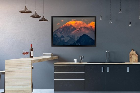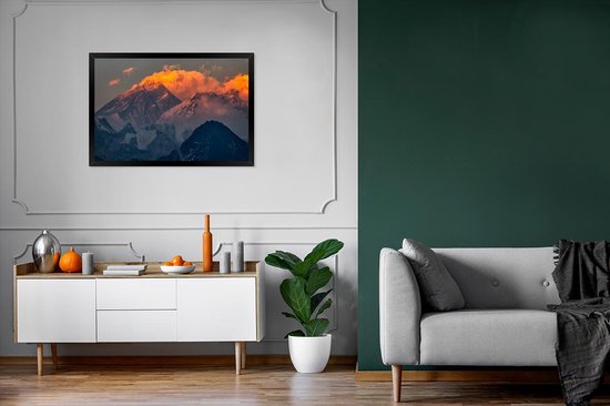 Affiche avec liste Camp de base de l' Everest - Soleil couchant Mont Everest au Népal. - cadre photo noir - 90x60 cm - Affiche avec cadre