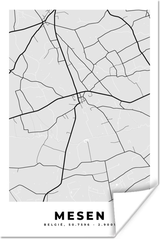 Affiche België – Messines – City Map – Map – Zwart Wit – Carte - 80x120 cm