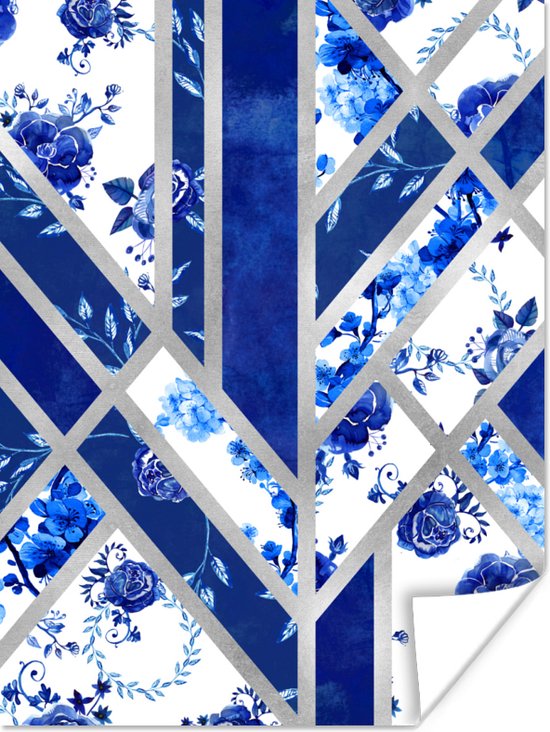 Affiche Bleu de Delft - Motif - Luxe - 90x120 cm