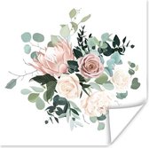 Affiche Bouquet de fleurs de pivoines roses - 100x100 cm XXL