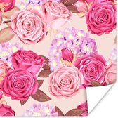 Affiche Bouquet de fleurs de pivoines roses - 30x30 cm