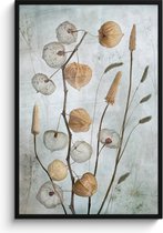 Complétez l'intérieur de votre salon, chambre ou bureau avec une affiche PosterMonkey ! Cette décoration murale représente une nature morte avec des brins d'herbe et une plante lanterne sur fond gris.