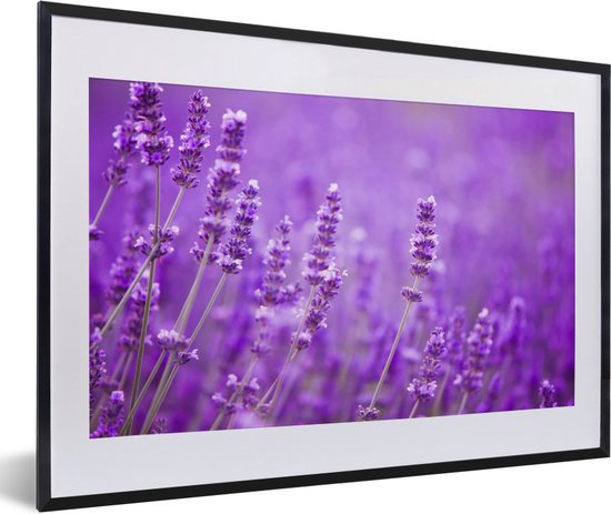 Affiche - Cadre photo - Fleurs - Violet - Lavande - Nature - Cadre - Cadre affiche - 60x40 cm - Cadre affiche - Décoration chambre - Affiche nature - Affiche fleurs - Photo avec cadre