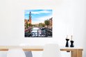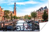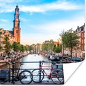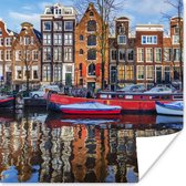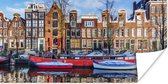 Un canal qui traverse Amsterdam avec des maisons de canal construites sur les côtés, les maisons de canal remontent à l'âge d'or.