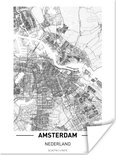 Affiche Carte - Amsterdam - Zwart - Wit - 90x120 cm
