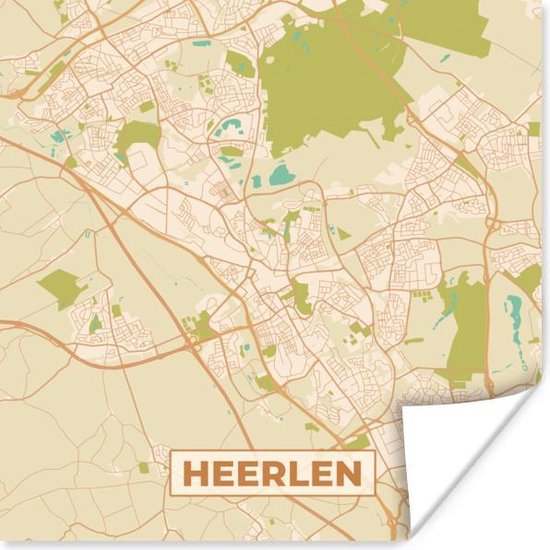 Affiche Carte - Heerlen - Vintage - 100x100 cm XXL