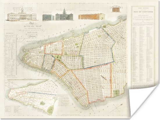 Affiche Carte - New York - Vintage - 80x60 cm
