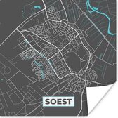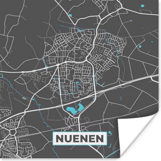 Affiche Carte - Nuenen - Grijs - Blauw - 30x30 cm
