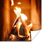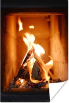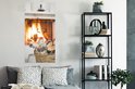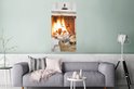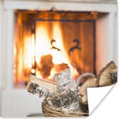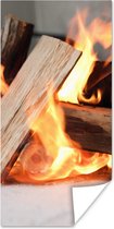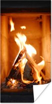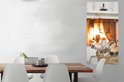 Affiche Cheminée derrière un panier de bois - 60x120 cm