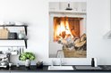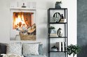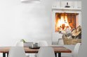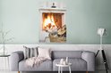 Affiche Cheminée derrière un panier de bois 80x120 cm - Tirage photo sur Poster (décoration murale salon / chambre)