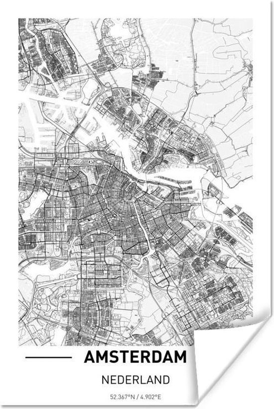 Rapprochez-vous encore plus de la ville de votre cœur avec ce plan de la ville d' Amsterdam. La carte en noir et blanc est parfaite pour tout amoureux de la capitale des Nederland.