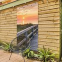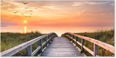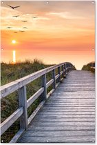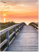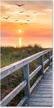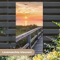 Affiche clôture Coucher de soleil - Mer - Chemin - Herbe - Dune - Vogels - 100x200 cm - Toile jardin