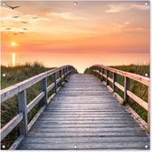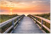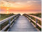 Tableau de jardin - Coucher de soleil - Mer - Chemin - Herbe - Dune - Vogels - Posters de jardin