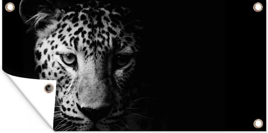Affiche clôture Panthère - Animaux sauvages - Zwart et blanc - Animaux - 200x100 cm - Toile de jardin