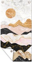 Les Posters de jardin, également appelées toiles de jardin, sont des affiches spécialement conçues pour être accrochées à l'extérieur. Cette nappe de jardin peut donc prendre une raclée. La voile Bisonyl a été utilisée pour cette affiche extérieure. Cette voile est une bâche enduite avec une belle finition. L'affiche de jardin est résistante aux UV, elle ne se décolore donc pas au soleil. Plusieurs anneaux ont été placés dans la toile pour que vous puissiez facilement l'accrocher! Jusqu'à une taille de 120x80 cm, les anneaux sont dans les coins, avec des tailles plus grandes, les anneaux viennent tous les 60 cm. Le tissu peut résister aux différentes conditions météorologiques et durera au moins 3 ans.