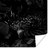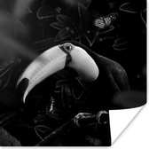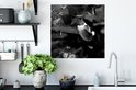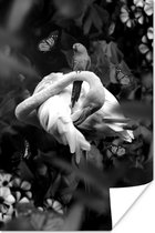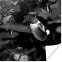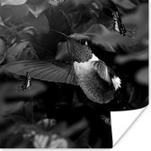 Affiche Colibri entre les fleurs roses anciennes et les papillons - noir et blanc - 50x50 cm