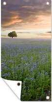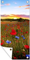 Affiche de clôture Coucher de soleil - Fleurs - Couleurs - 100x200 cm - Toile de jardin