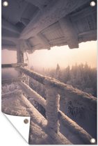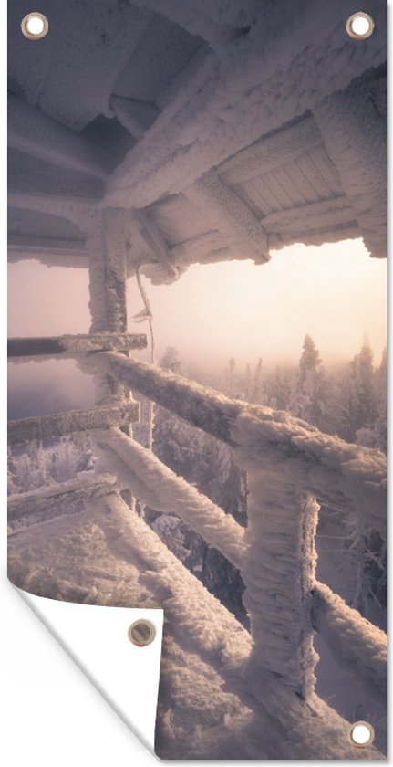 Affiche de clôture Montagne enneigée de Mogielica en Pologne pendant l'hiver - 100x200 cm - Toile de jardin