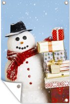 Tableau de jardin - Un bonhomme de neige avec des cadeaux de Noël - Posters de jardin