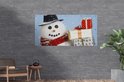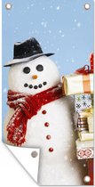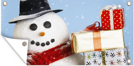 Affiche de clôture Un bonhomme de neige avec des cadeaux de Noël - 200x100 cm - Toile de jardin
