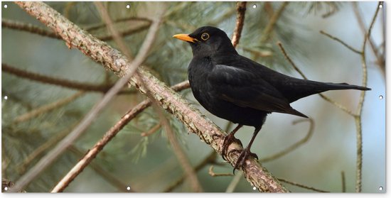 Affiche de clôture Vogel - Merle - Branches - Animaux - 200x100 cm - Toile de jardin