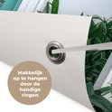Les Posters de jardin, également appelées toiles de jardin, sont des affiches spécialement conçues pour être accrochées à l'extérieur. Cette nappe de jardin peut donc prendre une raclée. La voile Bisonyl a été utilisée pour cette affiche extérieure. Cette voile est une bâche enduite avec une belle finition. L'affiche de jardin est résistante aux UV, elle ne se décolore donc pas au soleil. Plusieurs anneaux ont été placés dans la toile pour que vous puissiez facilement l'accrocher! Jusqu'à une taille de 120x80 cm, les anneaux sont dans les coins, avec des tailles plus grandes, les anneaux viennent tous les 60 cm. Le tissu résiste aux différentes influences climatiques et est garanti 3 ans.