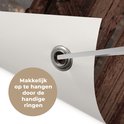 Les Posters de jardin, également appelées toiles de jardin, sont des affiches spécialement conçues pour être accrochées à l'extérieur. Cette nappe de jardin peut donc prendre une raclée. La voile Bisonyl a été utilisée pour cette affiche extérieure. Cette voile est une bâche enduite avec une belle finition. L'affiche de jardin est résistante aux UV, elle ne se décolore donc pas au soleil. Plusieurs anneaux ont été placés dans la toile pour que vous puissiez facilement l'accrocher! Jusqu'à une taille de 120x80 cm, les anneaux sont dans les coins, avec des tailles plus grandes, les anneaux viennent tous les 60 cm. Le tissu résiste aux différentes influences climatiques et est garanti 3 ans.