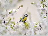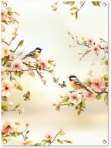Affiche de jardin 80x60 cm - Décoration de jardin Branches - Fleurs - Oiseaux - Rose - Affiche pour le jardin - Décoration extérieure - Tableau de jardin clôture - Décoration murale sur toile de jardin - Décoration murale sur toile de balcon