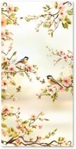 Peinture de jardin - Branches - Fleurs - Oiseaux - Rose - Posters de jardin extérieur
