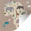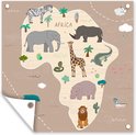 Affiche de Jardin Animaux - Wereldkaart - Enfants - Afrique - Kids - Garçons - Filles - 200x200 cm - Toile de jardin - Affiche extérieure
