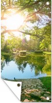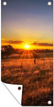 Affiche de jardin - Arbre - Herbe - Toile de clôture - Nature - Colline - Soleil - Jardin - Décoration de jardin - 80x40 cm - Toile de jardin - Affiche extérieure