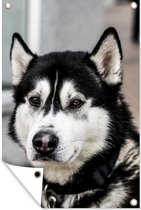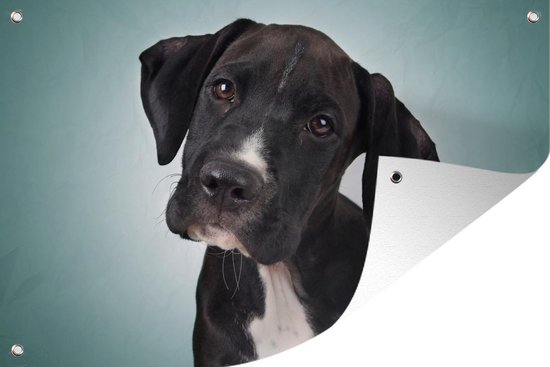 Affiche de jardin chien doux noir et blanc 200x100 cm - Toile de jardin / Toile d'extérieur / Peintures d'extérieur (décoration de jardin) XXL / Groot format!