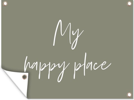 Affiche de jardin - Citations - My happy place - Jardin - Proverbes - Texte - 80x60 - Peinture de jardin - Toile de clôture - Toile de jardin - Affiche extérieure