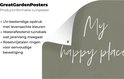 Rendez votre jardin encore plus stylé avec ce poster de jardin ! Cette toile de jardin porte la citation My happy place sur un fond vert.