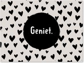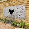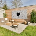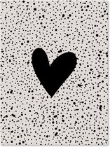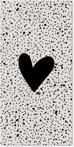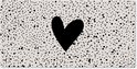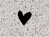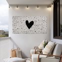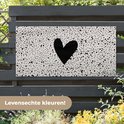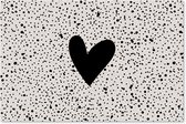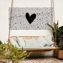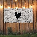 Un coeur noir est placé sur un fond beige avec des points noirs sur cette affiche de clôture. Ce tableau de jardin est la décoration parfaite pour votre jardin !
