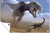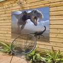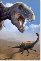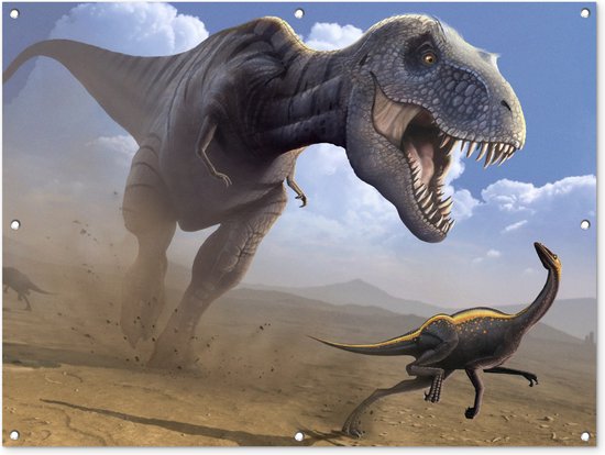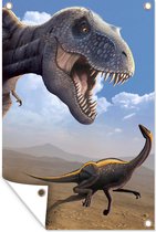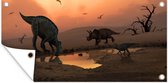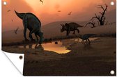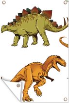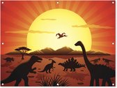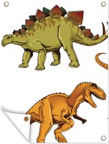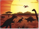 Affiche de jardin Dino - Animaux sauvages - Dessin - Enfants - Garçons - Enfants - 130x90 cm - Décoration murale Extérieur - Affiche de jardin - Toile de jardin - Affiche de clôture - Peinture de jardin